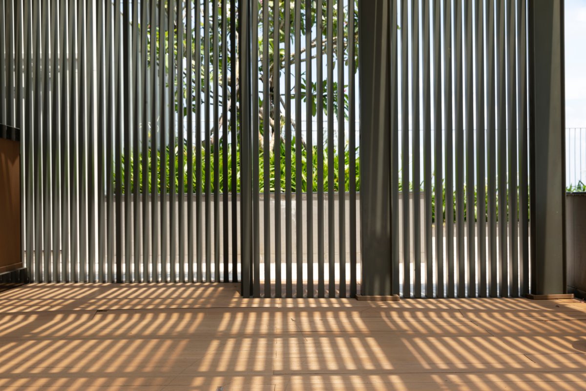 Abwaschbare, hygienische Lamellenvorhänge sorgen sowohl für natürliches Licht als auch für blickdichten Sichtschutz und Blendschutz.